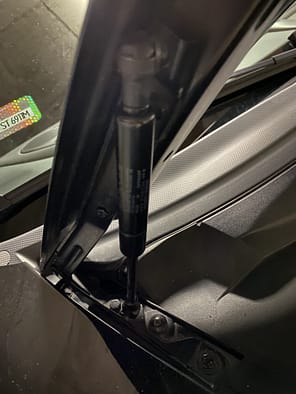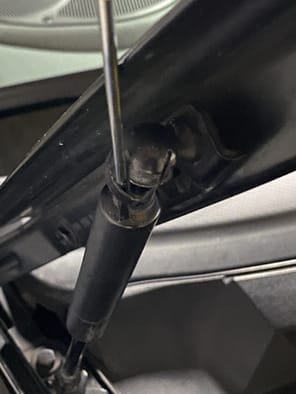 Wymiana siłowników jest banalna. Płaskim, cienkim i długim śrubokrętem podważamy zabezpieczające sprężynki (najpierw górne mocowanie, potem dolne siłownika), luzujemy amortyzator i wyciągamy go. Nowy wystarczy włożyć i zatrzasnąć automatycznie na klik.