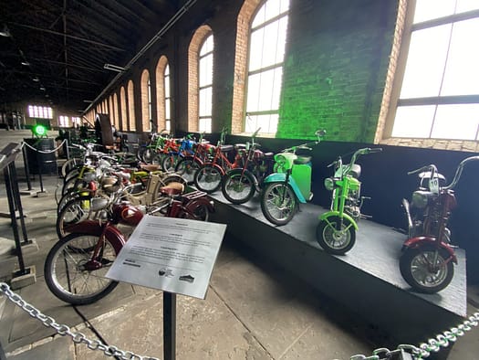 W drugiej hali Walcowni mieści się wystawa motorowerów i lekkich motocykli z okresu powojennego, różnego rodzaju maszyn i silników oraz kilka motocykli marki Harley-Davidson. Największy ubaw mieliśmy testując dźwięk przedwojennego klaksonu.