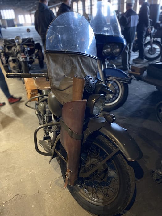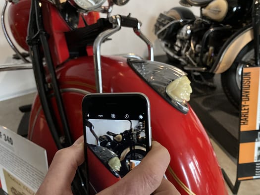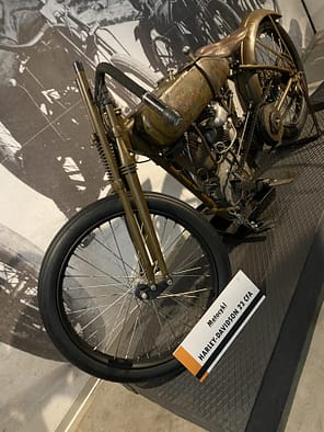 Na zakończenie zwiedzania, nasza grupa została przejęta przez Panią Przewodnik z którą zwiedziliśmy wystawę klasycznych amerykańskich motocykli, której gwiazdą jest Harley-Davidson 23 CFA, chociaż mi osobiście do gustu najbardziej przypadł „damski” model B produkowany w latach 1926-1929 osiągający moc 8KM z 348cm3. Bardzo interesujący był również wojskowy Idiana Chief 340B z 1942r osiągający imponujące 40KM z potężnego silnika o pojemności 1200cm3. Dla mnie, najbardziej zaskakującą częścią wystawy motoryzacyjnej była ekspozycja pokazująca ewolucję kanistrów! Te trójkątne z lat 20 tych przypominały bardziej współczesne damskie torebki od Gucci lub Louis Vuitton.