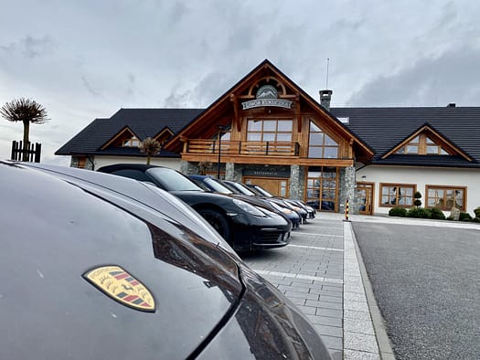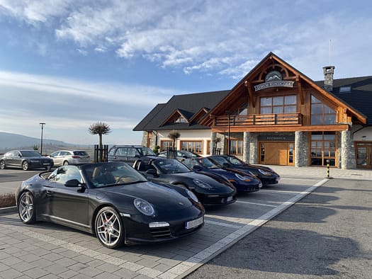 Mniej więcej połowa naszej grupy udała się na przejażdżkę w góry, gdzie mieliśmy zarezerwowany parking i stolik na lunch w Dworze Kukuczka w Istebnej. W kierunku Beskidów udaliśmy się nawet większą grupą, gdyż koledzy z Małopolski postanowili nas jeszcze „trochę odprowadzić”, a załoga pięknej 964 towarzyszyła nam prawie do naszego pit stopu na stacji benzynowej przed Bielskiem.