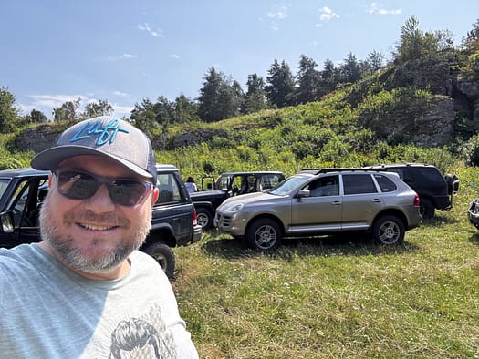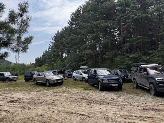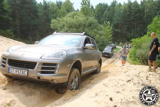 W sobotni poranek spotkaliśmy się nad brzegiem jeziora Pogoria, by w kilkanaście samochodów wyruszyć na trasę „między jeziorami”. Nasza droga wiodła przez leśne ścieżki i lokalne nieutworzone drogi. Podczas imprezy mieliśmy trzy próby dla chętnych. Pierwsza to piaskownia. Dla mnie był to debiut w terenie. Brak doświadczenia dał znać o sobie i nie włączyłem skrzyni biegów w tryb manualny i będąc już prawie na szczycie piaszczystego pagórka, samochód zmienił big na wyższy i ten ułamek sekundy zadecydował o zakopaniu się w piachy. Na szczęcie druga próba poszła już gładko, czego nie można powiedzieć o wielu innych samochodach – ta przeszkoda była dla połowy uczestników nie do przejścia.